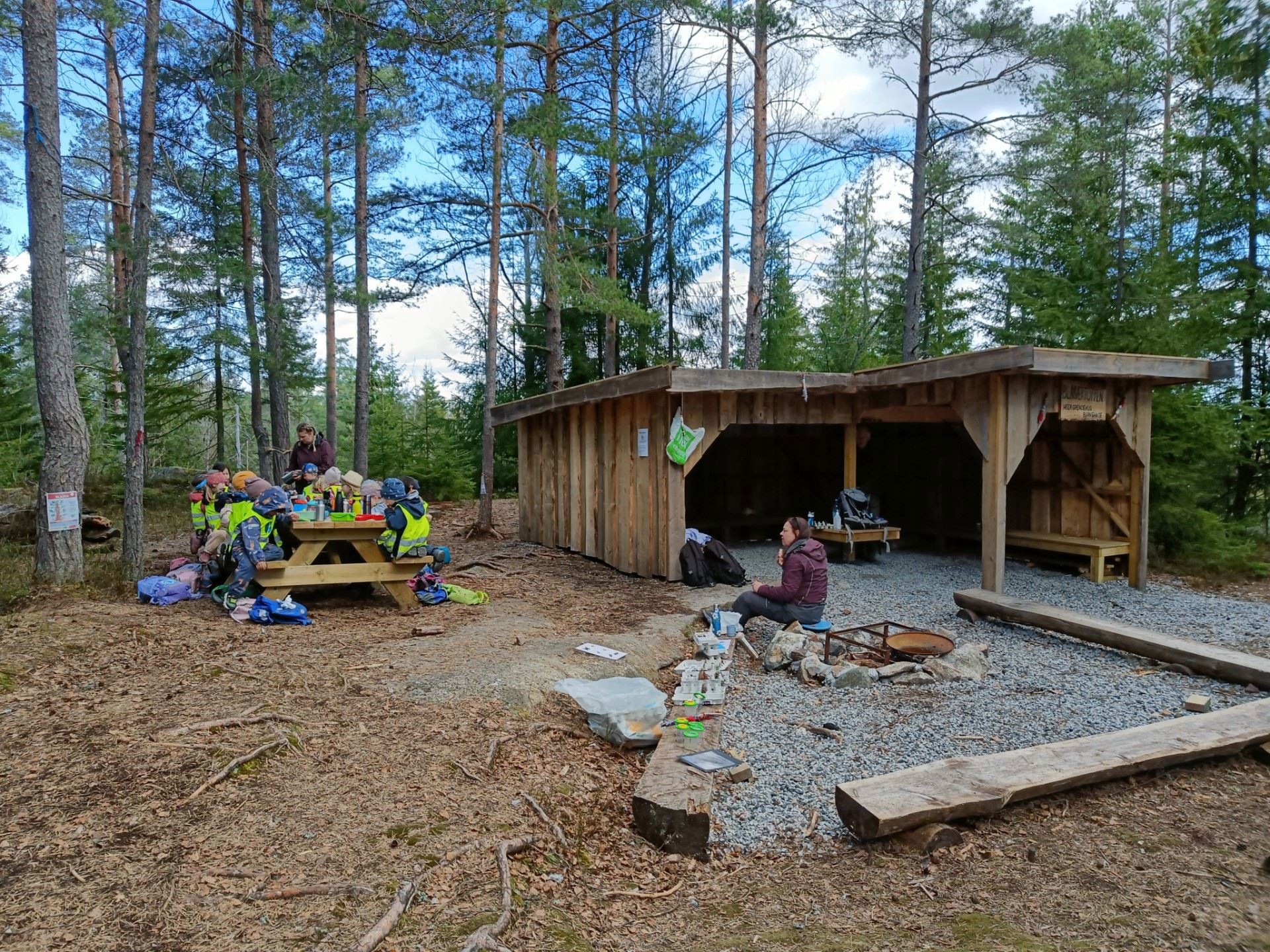 Vi er mye ute på tur og turen går ofte til blåbærtoppen! Der har vi fin gapahuk og mange muligheter til god lek. Nå jobber vi med insekter! Vi liker godt å lete etter insekter og se på dem i forstørrelsesglass. Vi lærer oss også mye om insektene vi finner og andre ting om naturen vi befinner oss i!
